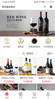 紹興葡尚皇家酒莊小程序是紹興魔方網(wǎng)絡(luò)科技有限公司2019年度開發(fā)的微信小程序,小程序頁面設(shè)計(jì)時(shí)尚簡(jiǎn)潔,是愛品味紅酒和收藏紅酒購買小程序,開發(fā)了首頁商城、分類、購物車、我的中心等等模塊。